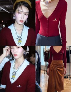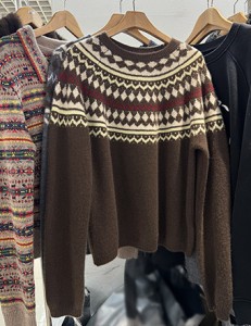 • [BEST] 버건디레드/탠/아이 라운드캐시미어스웨터