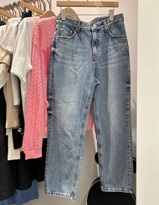 살짝 배기핏의 하이웨스트 데님에요.