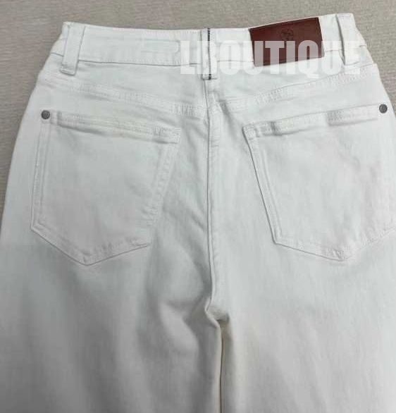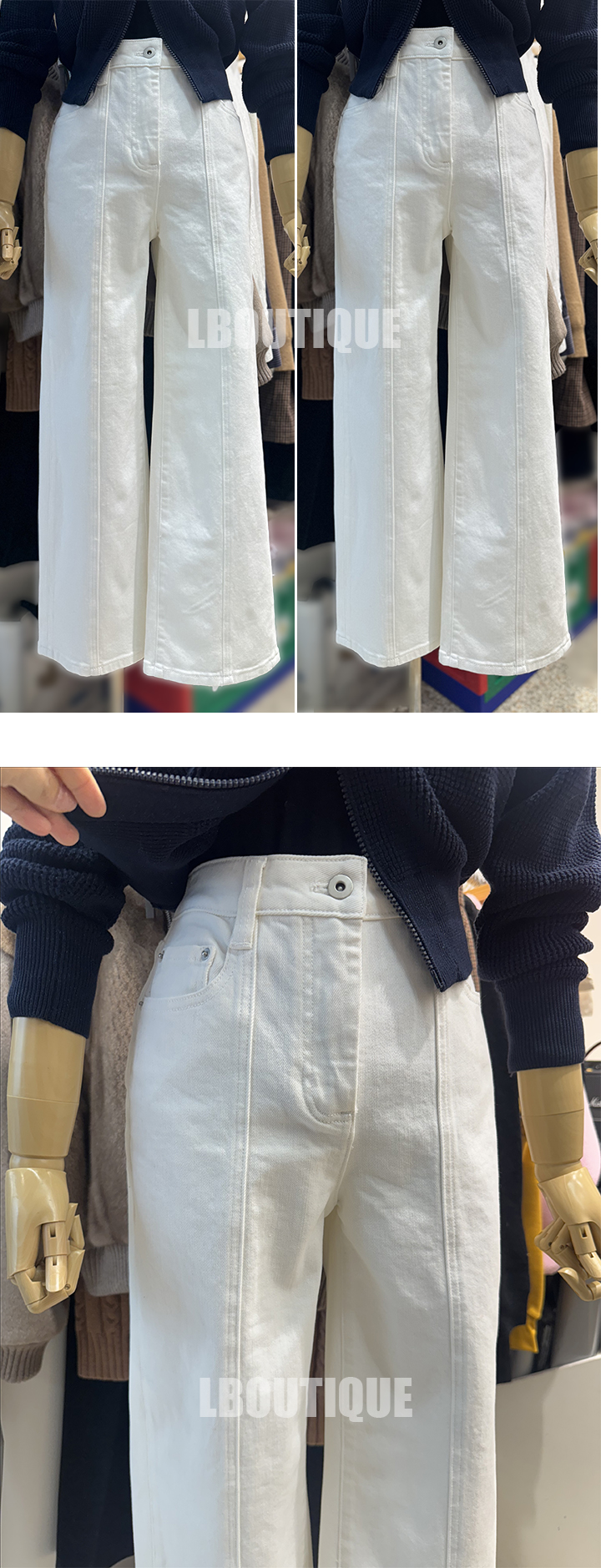 크림아이보리컬러톤의 신축성 많이 없는 일자핏 데님에요.